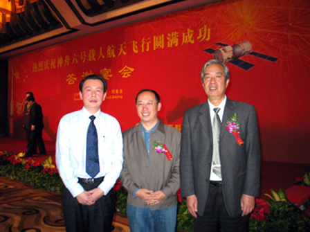 公司董事長(左)與神州五號總指揮黃春平(右)合影